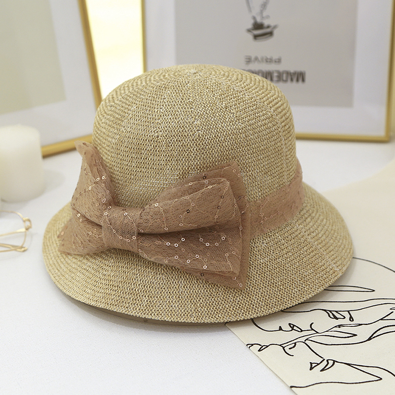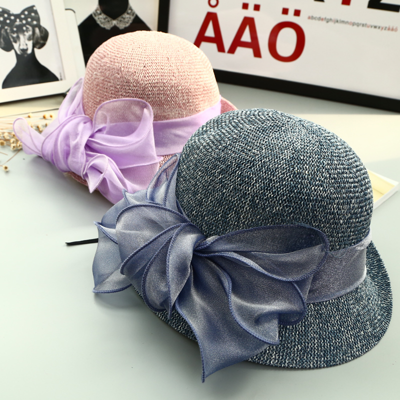 Korean organza bow fashion elegant hat ladies British style summer Korean version of the sun hat basin hat tide