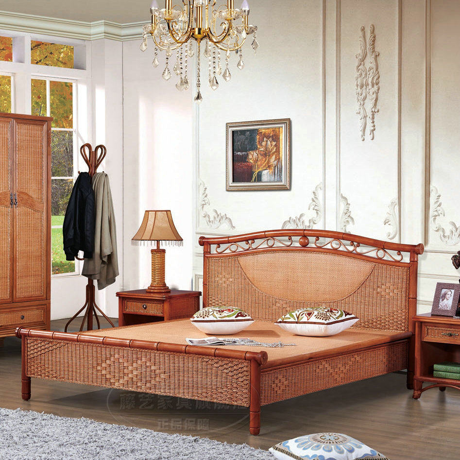True vine bed rattan solid wood double bed reclining rattan bed room suite bedside table dresser wardrobe combination furniture