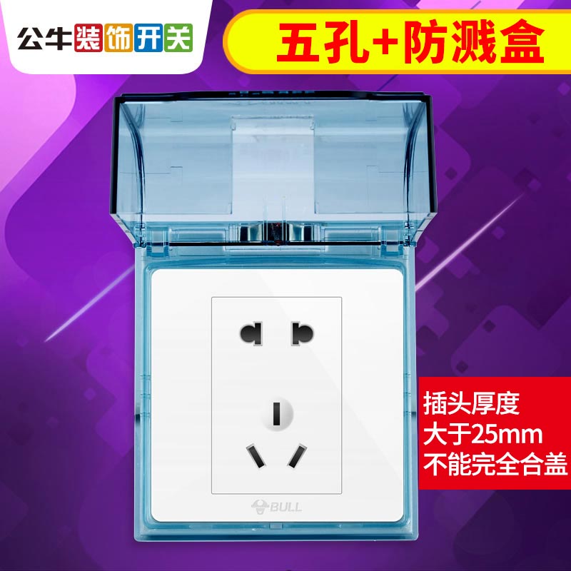 Bull electric water heater special socket panel 16a with switch large three-hole air-conditioning five-hole waterproof splash box concealed