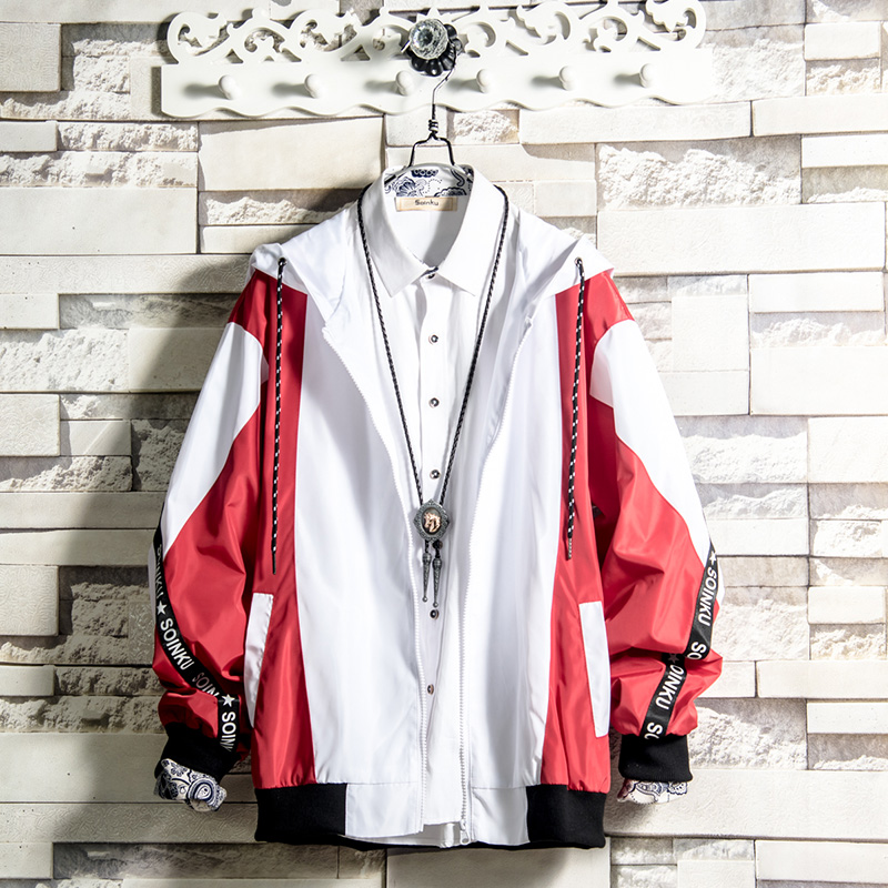 White sugar rose 21 hooded jacket men's color color personality handsome 2021 pop spring and autumn coat Korean student tide