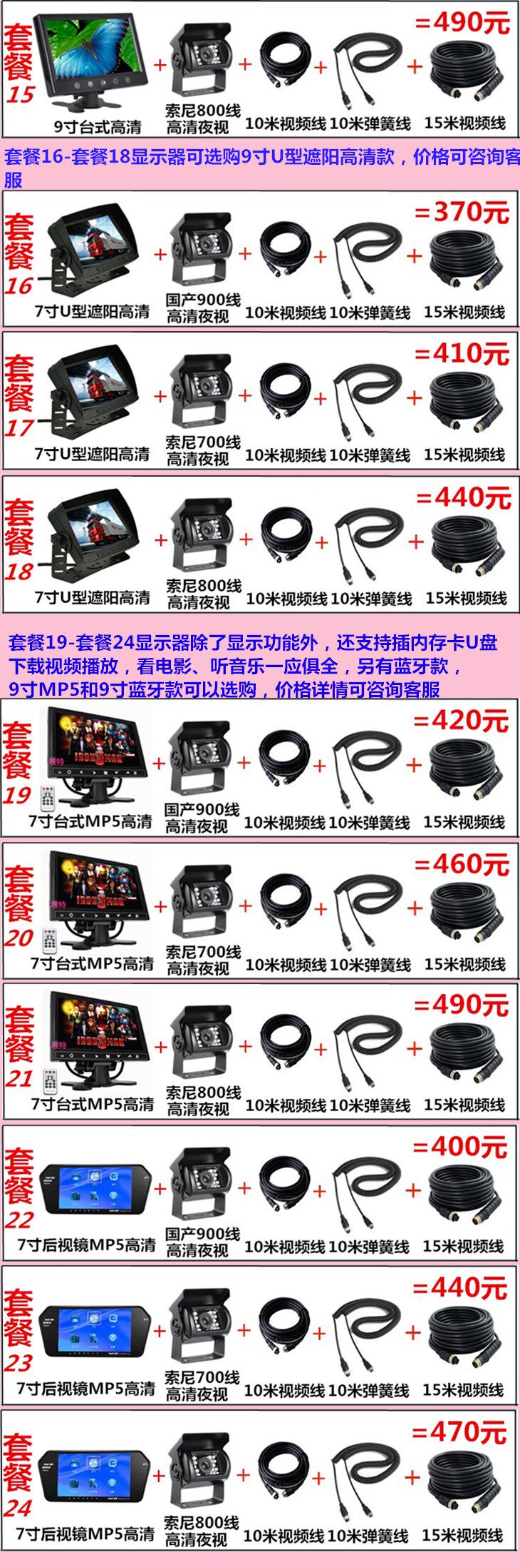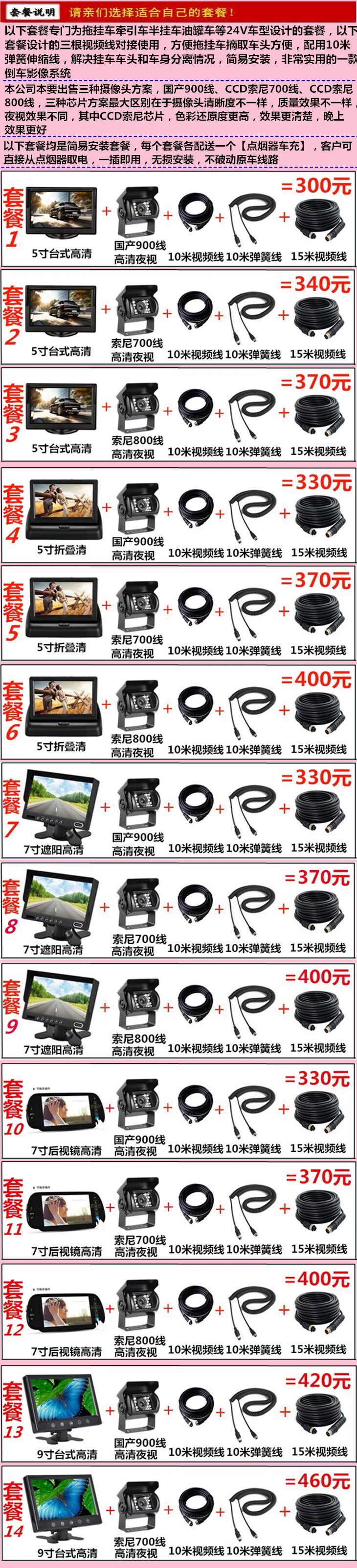 24V large truck semi-trailer special 9-inch 7-inch reversing film image system infrared night vision monitor