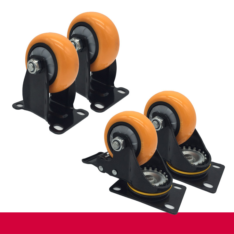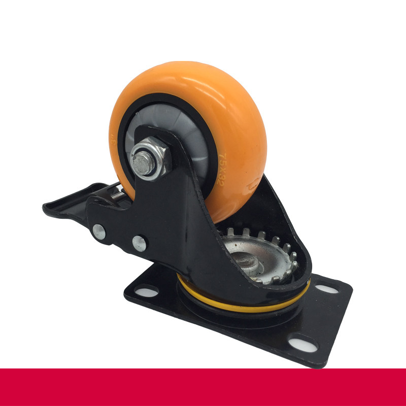 3 inch silent caster polyurethane universal wheel with brake flat trolley wheel shelf movable wheel