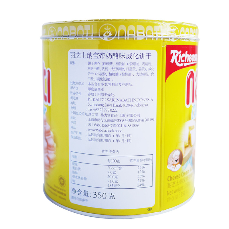 Indonesia imported Li cheese nabati nabati cheese cheese wafer sandwich cookies 350g canned gift box products