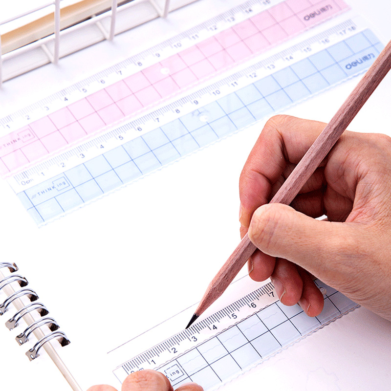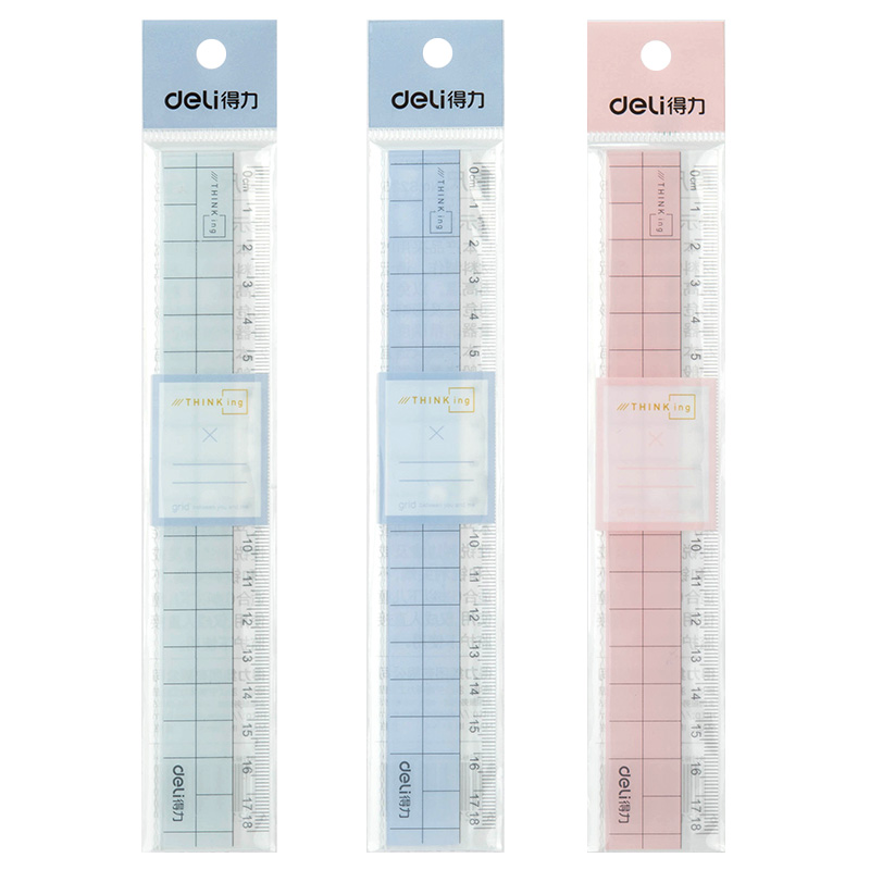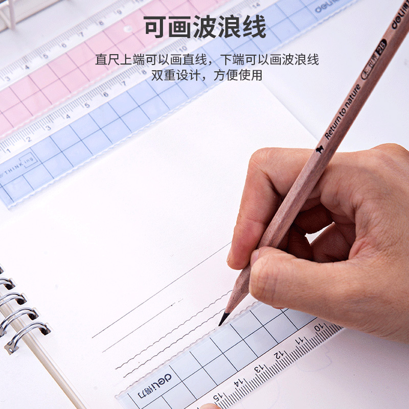Deli 6235 curve ruler straight ruler Student office transparent plastic ruler 18cm with wave ruler 18cm learning stationery