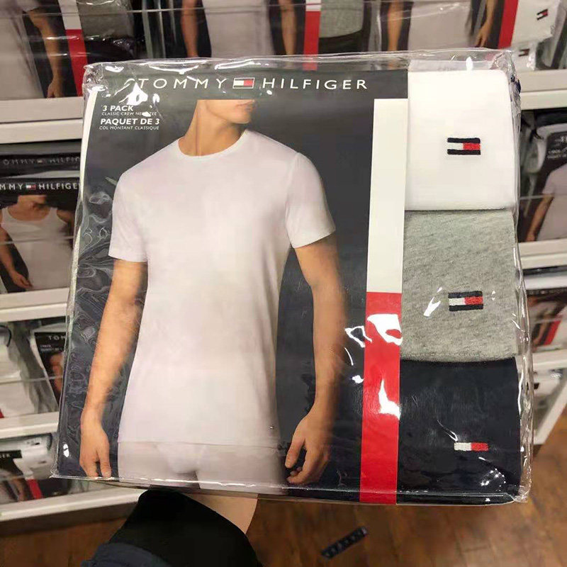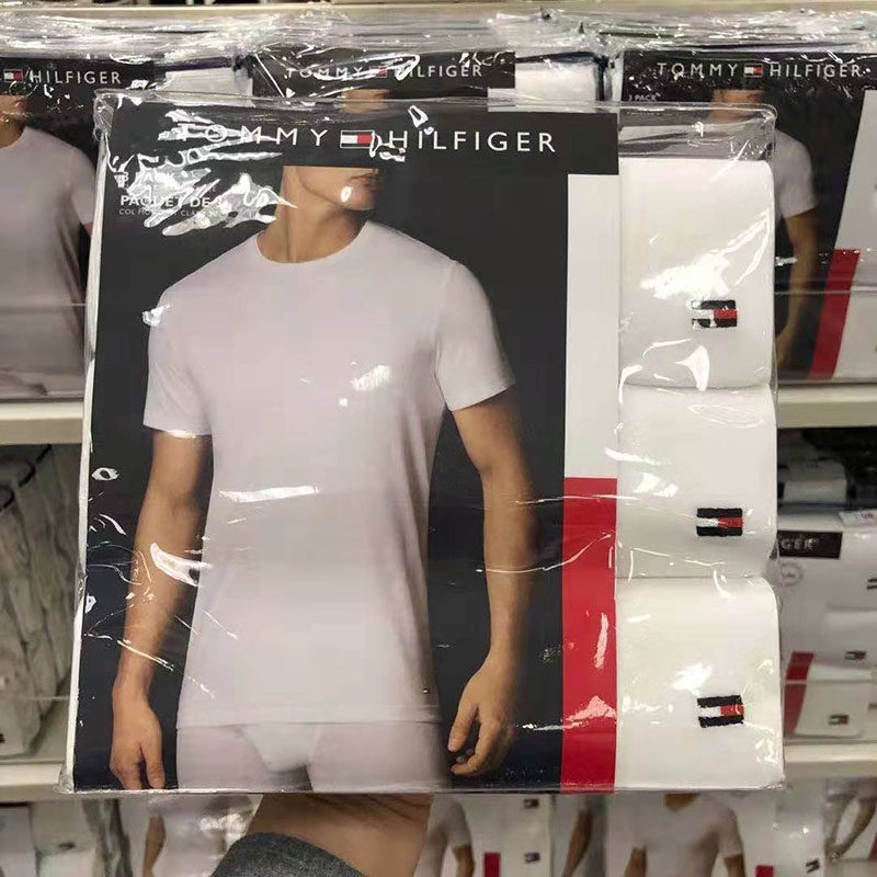 US-China shopping cart Tommy Hilfiger men's casual short sleeves pure cotton comfortable undershirt T-shirt 3 pieces