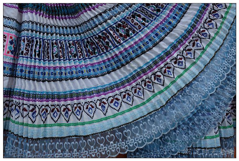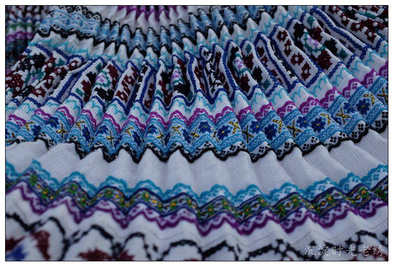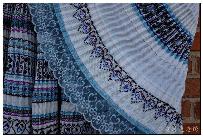 Yunnan Miao cross-picking handmade old embroidered pleated skirt waist 81cm ay061