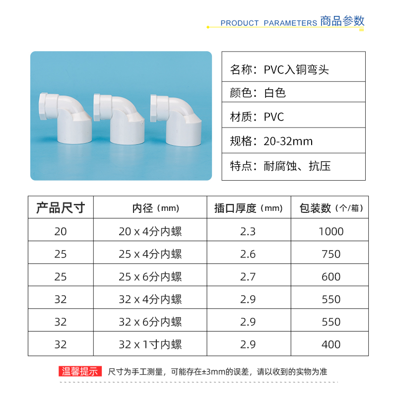 PVC water pipe into copper elbow copper inner tooth variation diameter internal thread three-way 20 20 25 32 4 6 points 1 inch