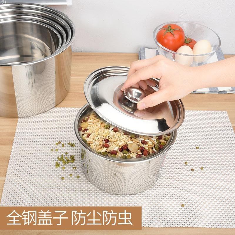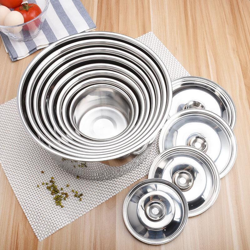 Kitchen hitting egg basin and pelvis round thickening stainless steel basin household with a large bowl of rice bowl with lid taste pot