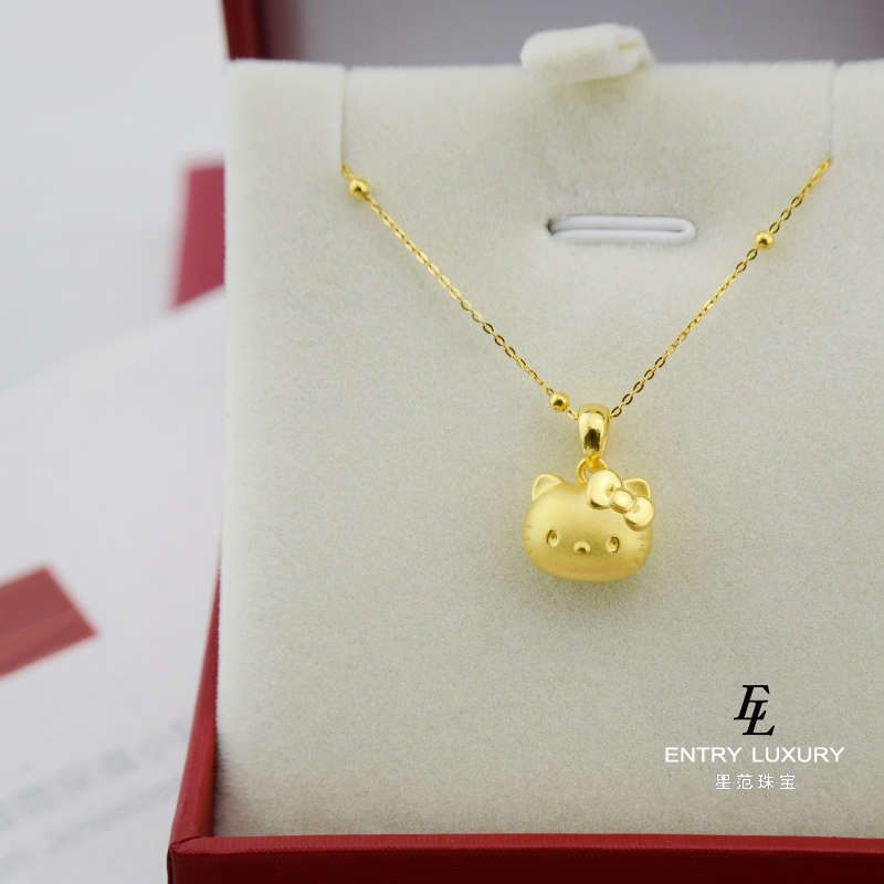 Pure Gold 999 Gold Pendant Hello Kitty Catwoman Pure Gold Necklace 3d Hard Gold Kt for Girlfriend Neck Ornament