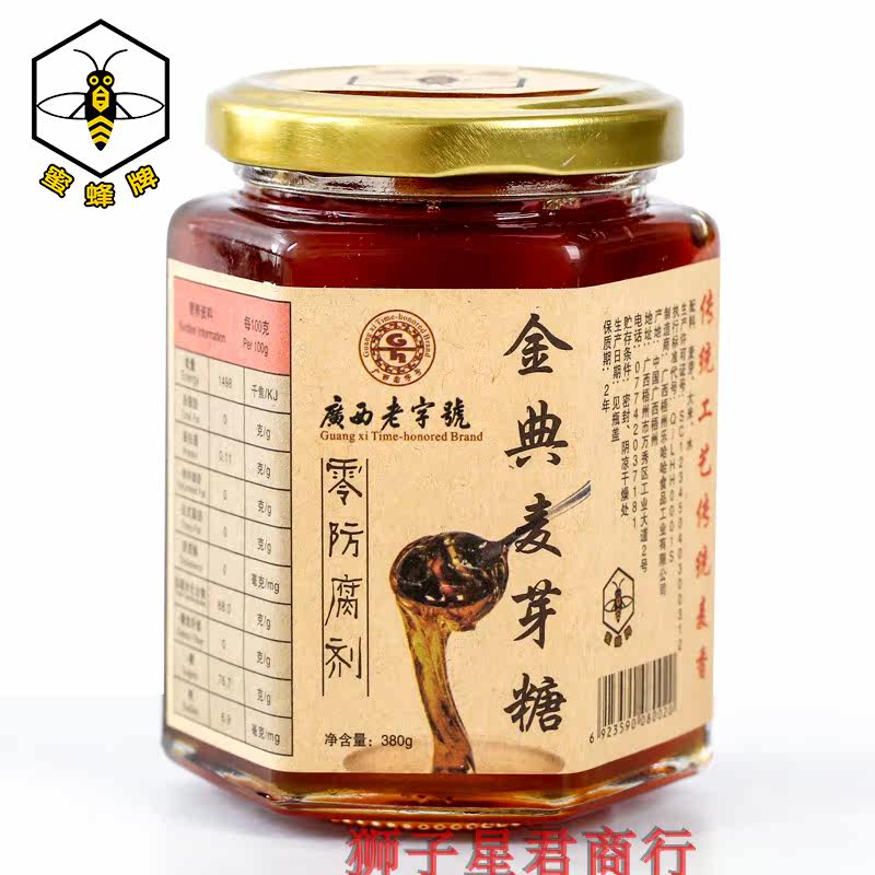 () Guangxi Wuzhou specialty pure Bee brand Golden maltose 380 grams 60 years of export quality