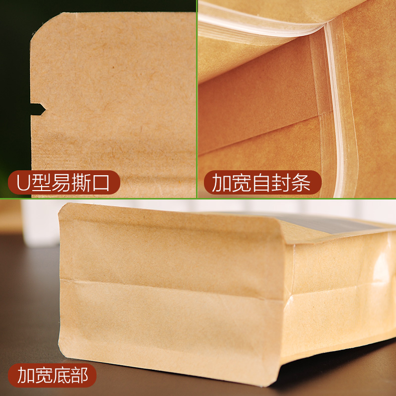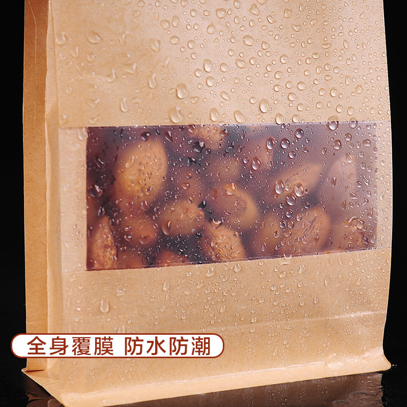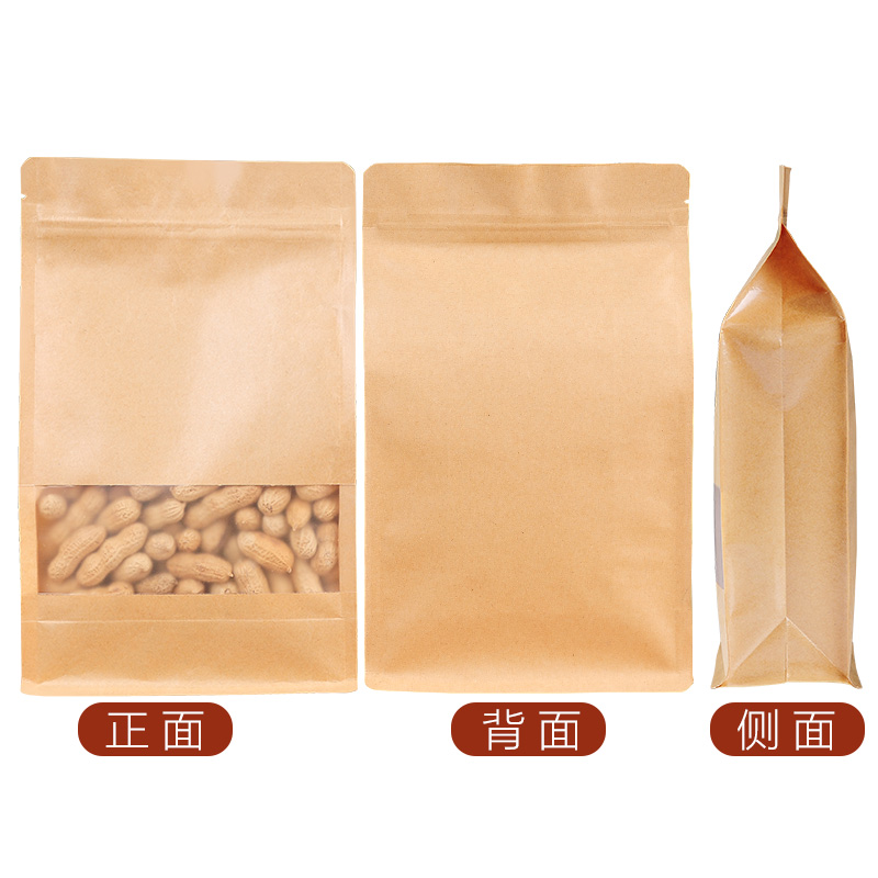 Kraft paper bag ziplock bag transparent frosted eight sides sealed three-dimensional snacks dry fruit tea packaging bag sealed pocket