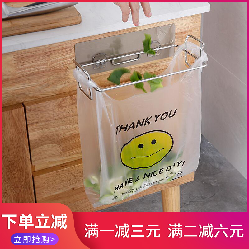 Kitchen garbage bag storage rack toilet bucket hanging garbage bag rack stainless steel bracket cabinet door hook hanging rack