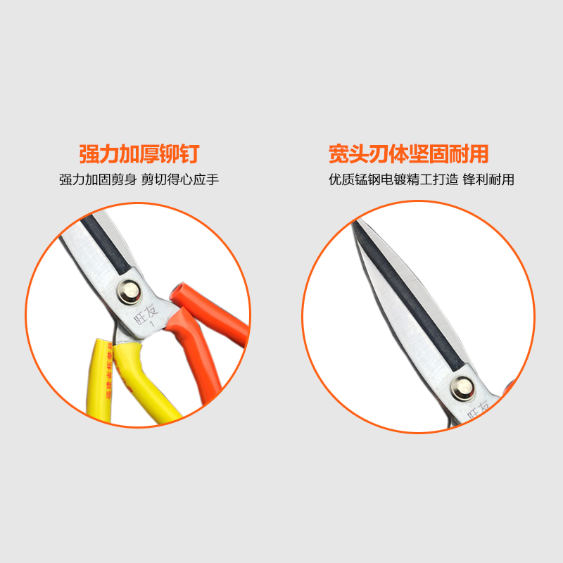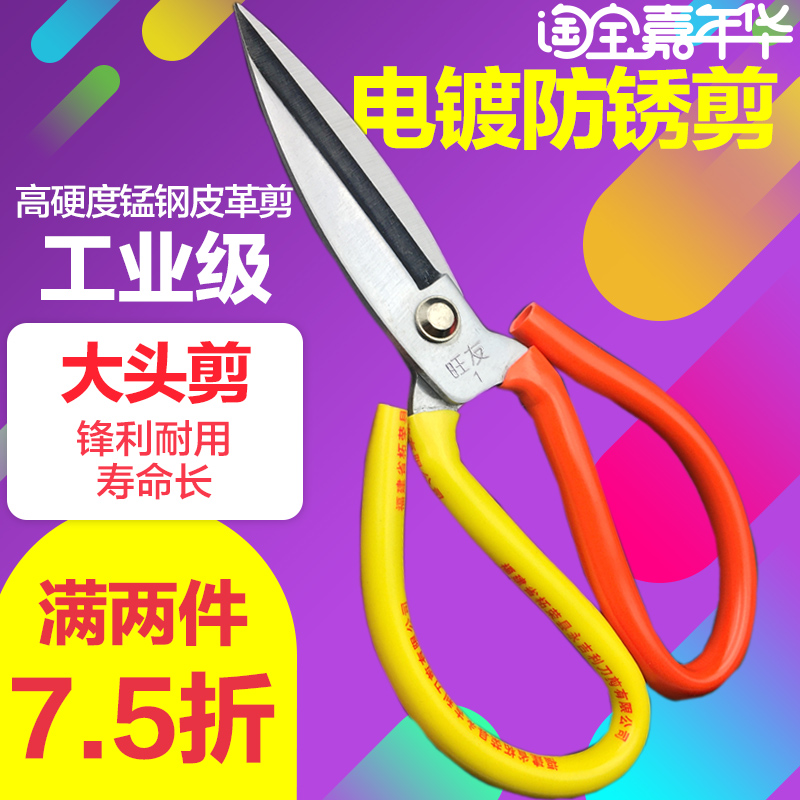 Large head cutting leather scissors fishhead industrial large scissors household special rubber strong industrial grade plating rust shear