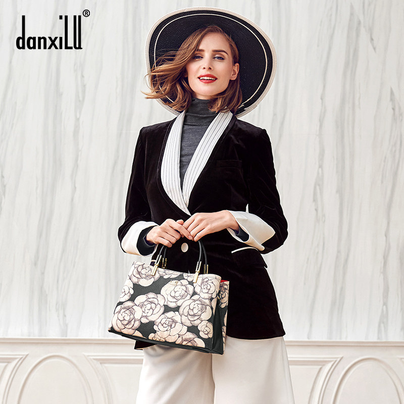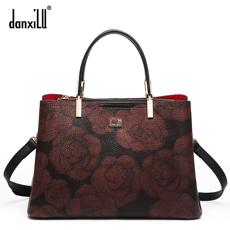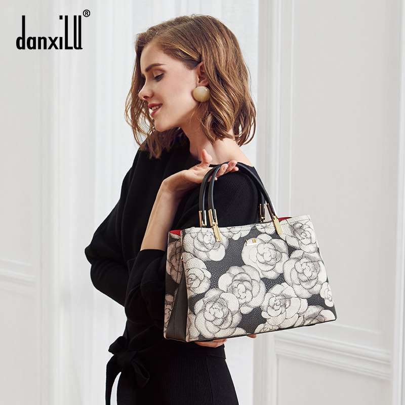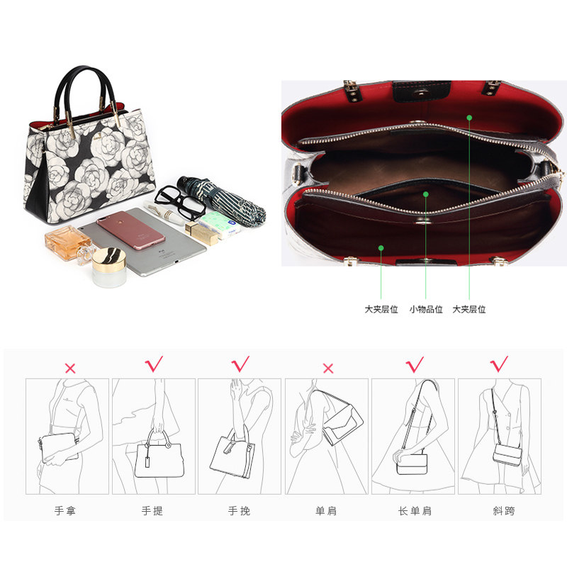 Tanshi Road Genuine Leather Women Bag 2020 New Fashion Mountain Tea Flowers Princess Bag Middle-aged Single Shoulder Slanted Satchel Bag of Bull Leather Bag