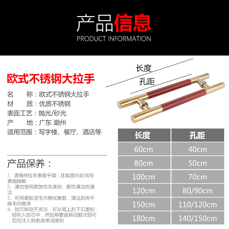 Glass door handle Titanium medium wood grain KTV wooden door stainless steel handle European Chinese style golden door handle
