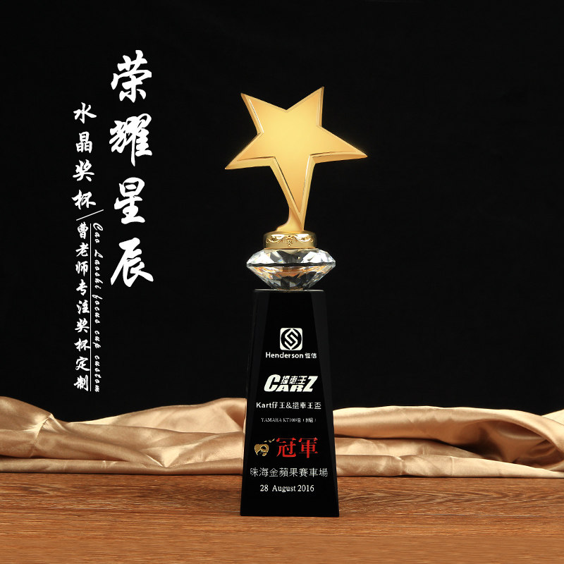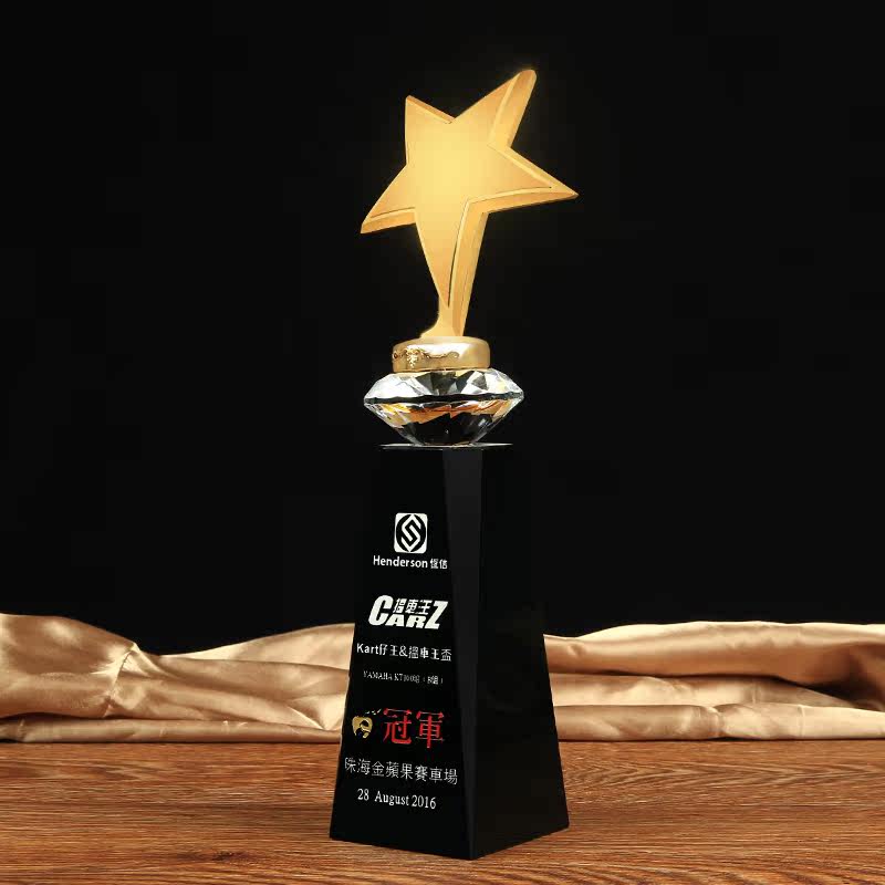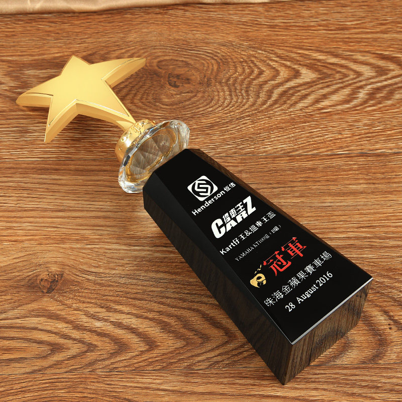 Metal Pentagram Crystal Trophy Customised Black Crystal Medal Production Awards Trophy Authorisation Cards