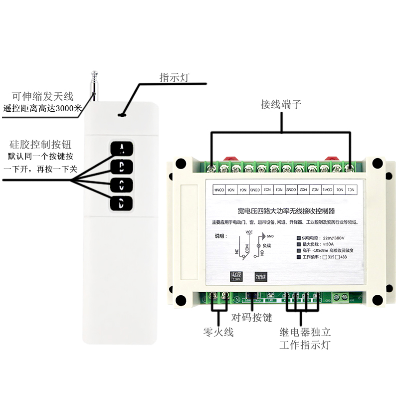 220V380V volt 4-way high-power light motor lifting controller remote fence machine wireless remote control switch