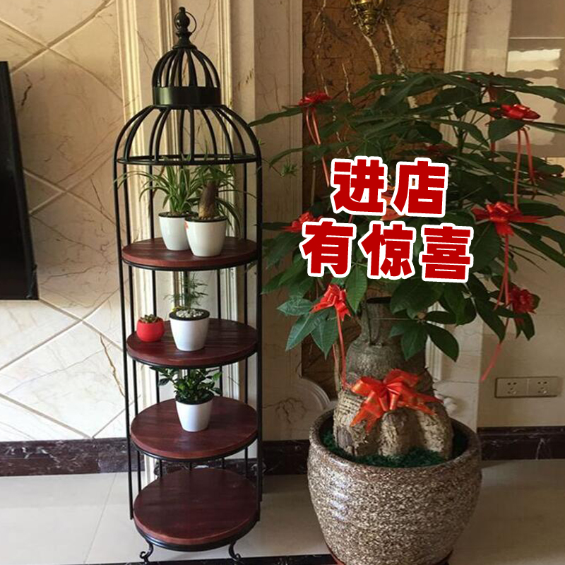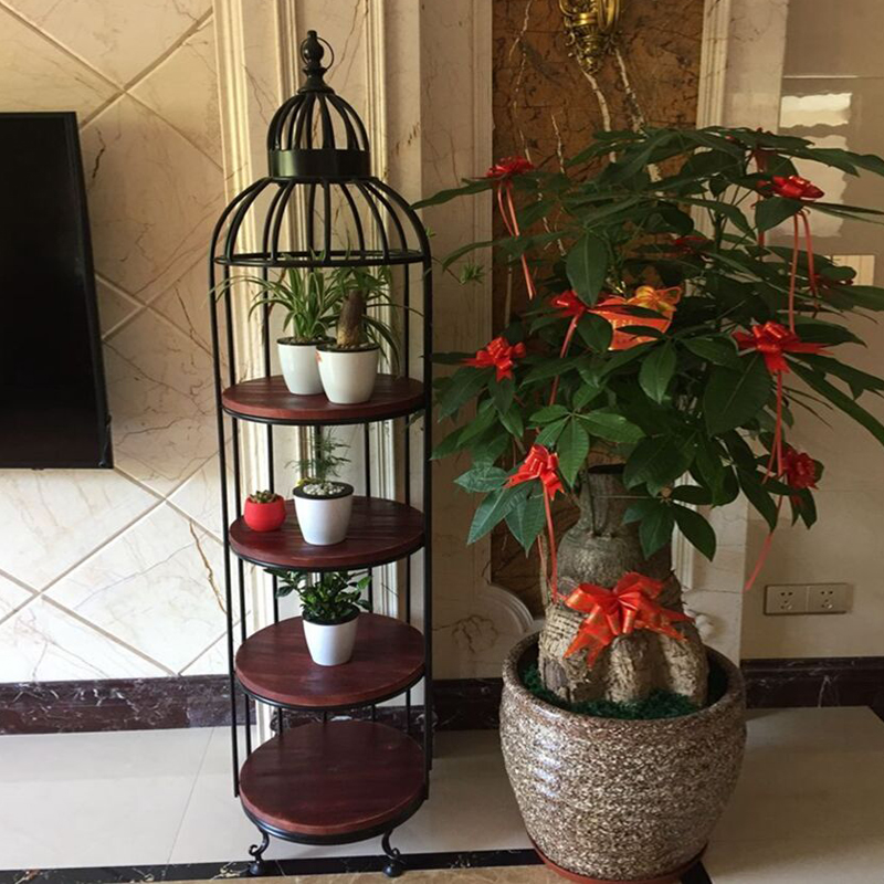 Wrought iron bird cage Solid wood flower frame Climbing rattan partition Floor shelf Storage shelf Floor-to-ceiling corner bookshelf