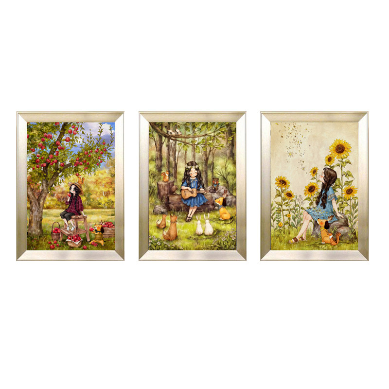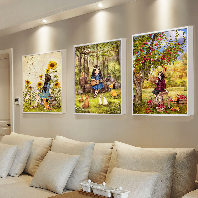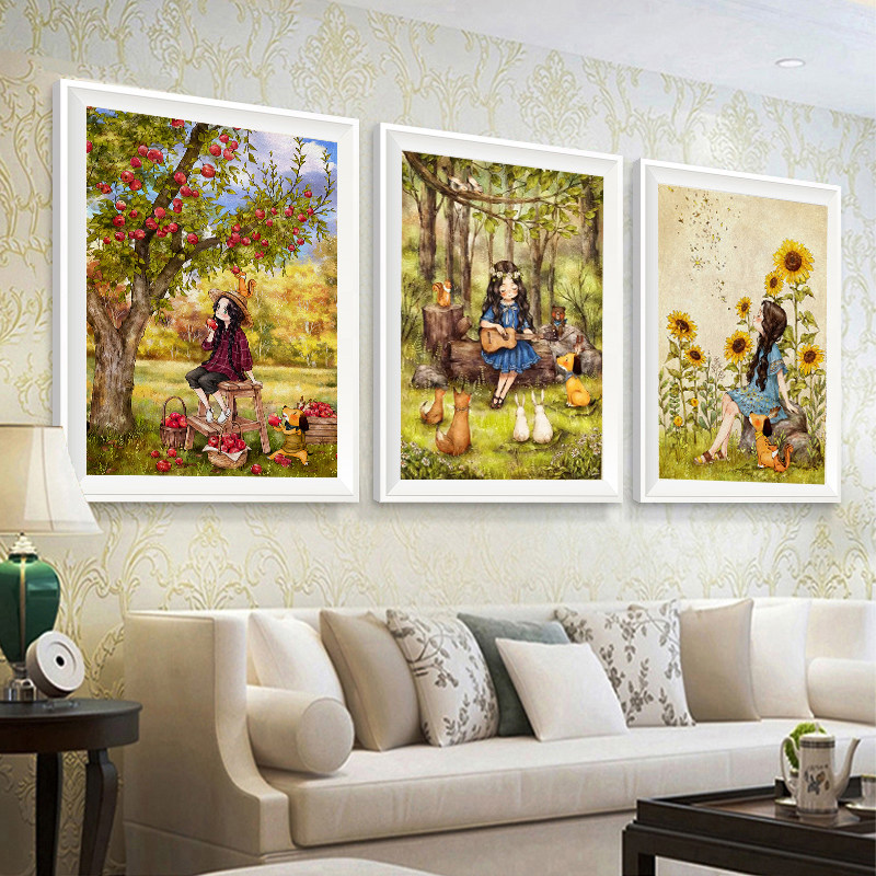 Mona Lisa Cross embroidered cartoon girl triptyline embroidered new minimalist modern living room small bedroom with small pieces