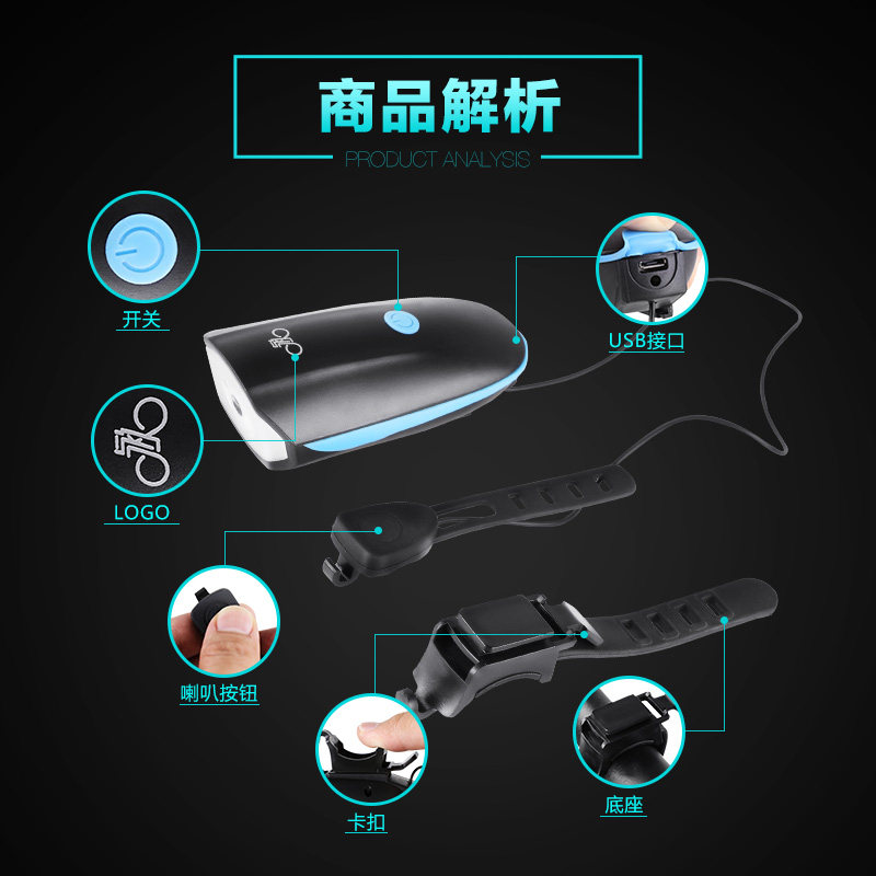 Permanent bicycle night riding light Mountain bike headlight Wire control horn light Strong light flashlight Shoulder light Warning riding light