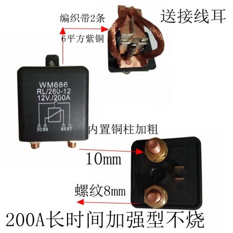 200A high power car relay 12V 24V large current total power switch start relay 4 feet
