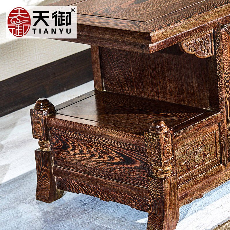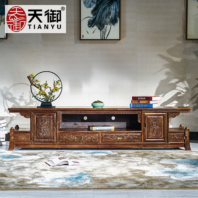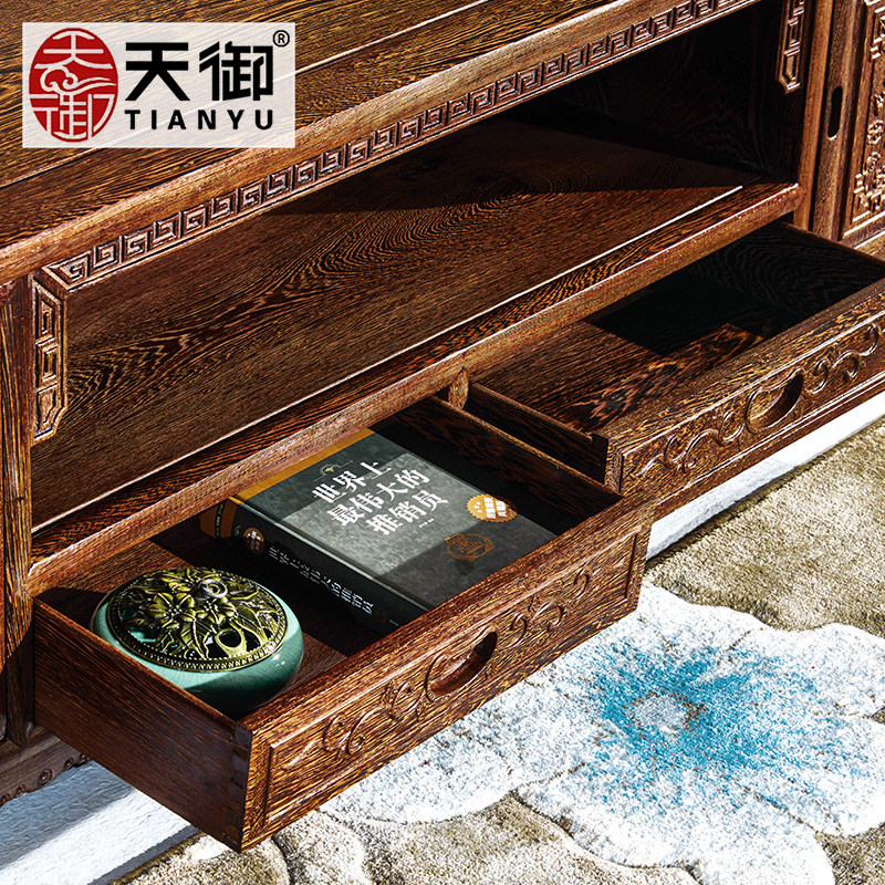 Wenge wood TV cabinet New Chinese style small apartment TV cabinet solid wood living room floor cabinet locker mahogany furniture