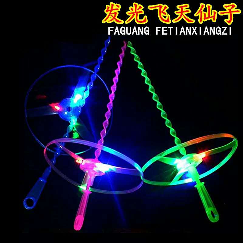 Luminous hand push flying saucer, flying fairy bamboo dragonfly, nostalgic luminous toys for post-80s children, street stall night market