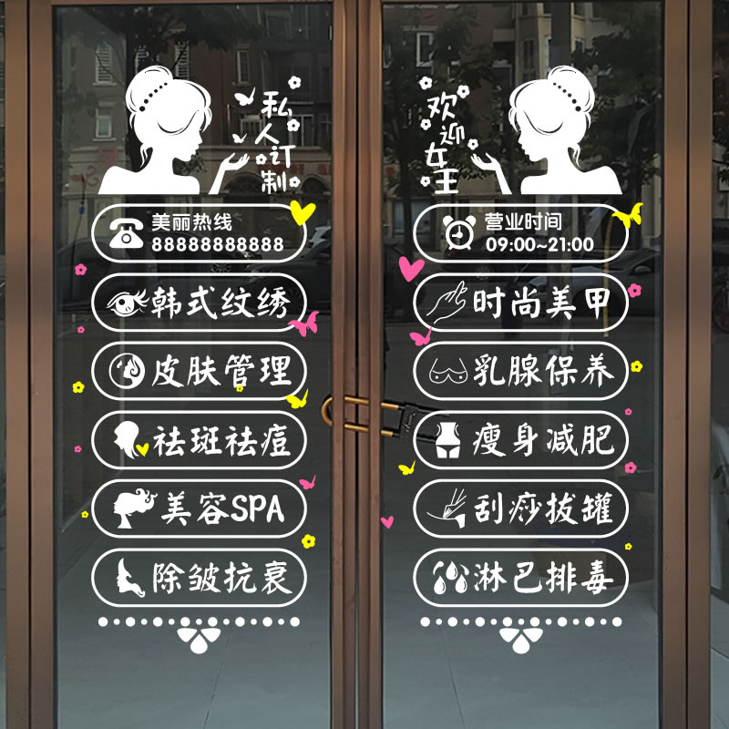 Creative beauty salon glass door customization text advertising and nursing clothing shop window decoration sticker