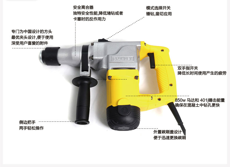 Stanley Power Tools STHR271K 272K Electric Hammer Electric Pickaxe Dual Purpose High Power 850W Professional Electric Hammer Drill