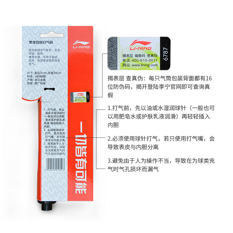 Li Ning basketball pump with air needle two-way Mini Portable football volleyball ball inflatable