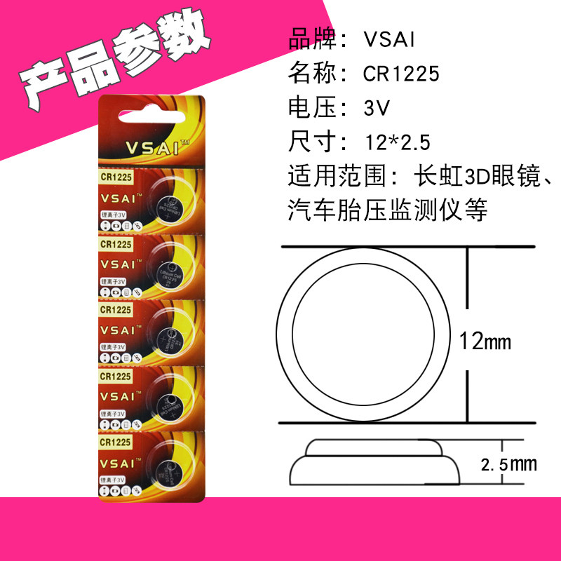 VSAI car tire pressure detector button battery cr1225 3V electronic watch battery 10 pcs
