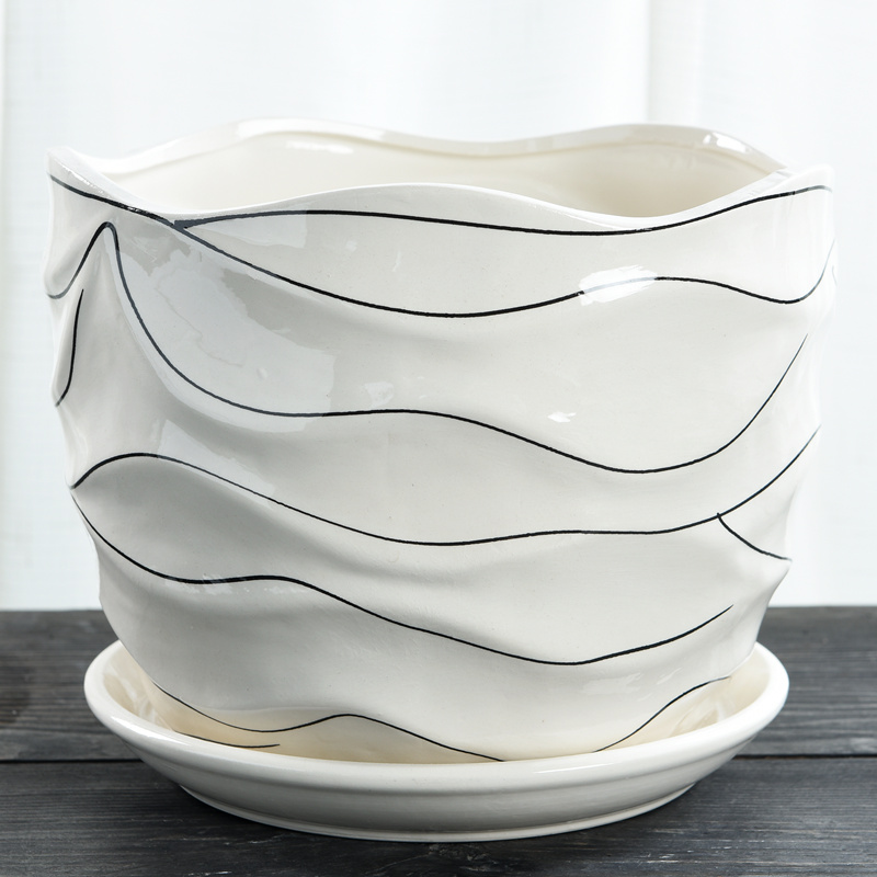 Flower pot ceramic large special price clearing with pallet creativity green rot sling lander household small meat pot
