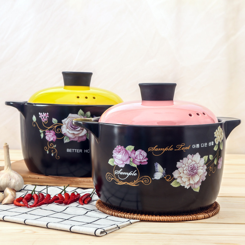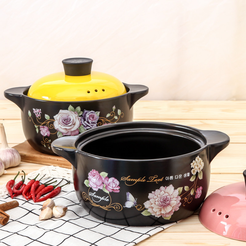 Huamei Crown Ceramic Casserole Saucepan Saucepan Saucepan with heat-resistant small sand pot Home saucepan High temperature resistant Ming fire soup saucepan cooking porridge