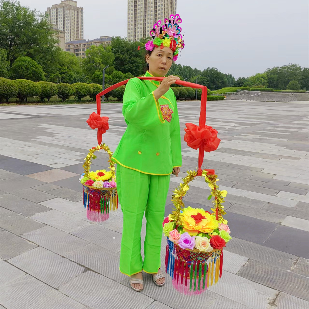 Red Flower Basket A red flower basket A pair of green flowers basket a pair of red flowers basket a pair of clothing headdress 1 flower pick embroidered green flower basket embroidered bloom bloom