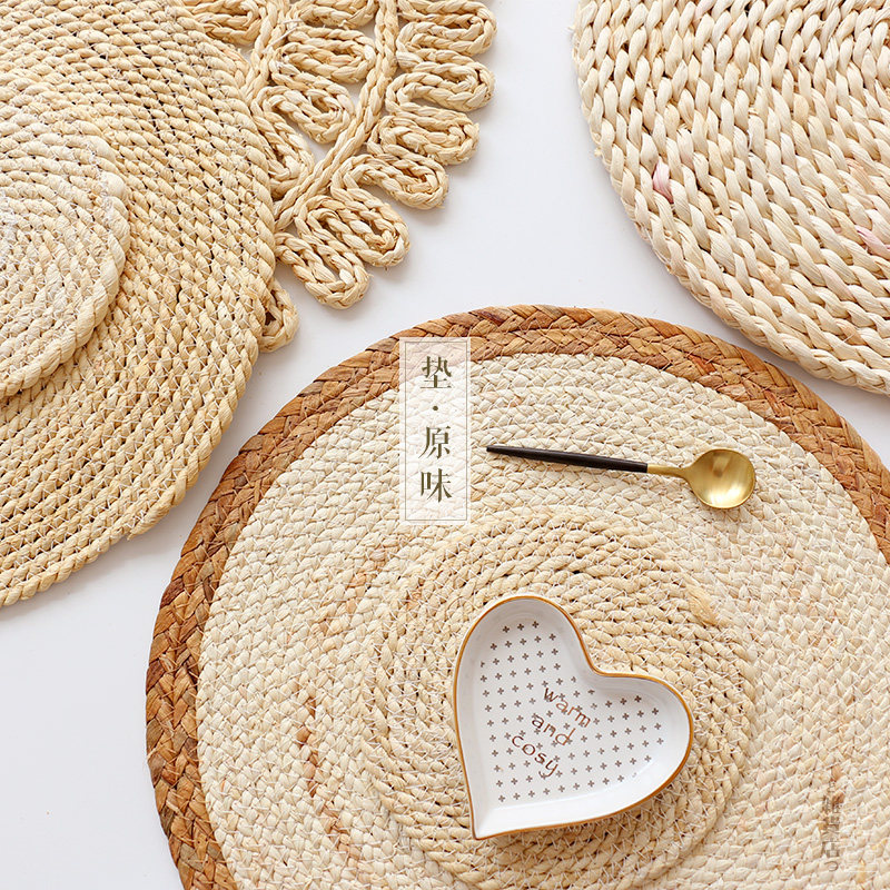 Vegan-meal cushion corn leather original material heat insulation mat straw chedad round exothermal pot cushion cup cushion bowl cushion household grass mat