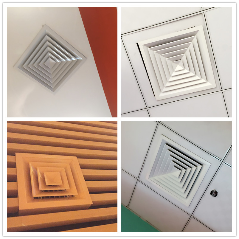 Custom aluminum alloy central air conditioning outlet vents Suspended ceiling metal square diffuser four-sided air louvers