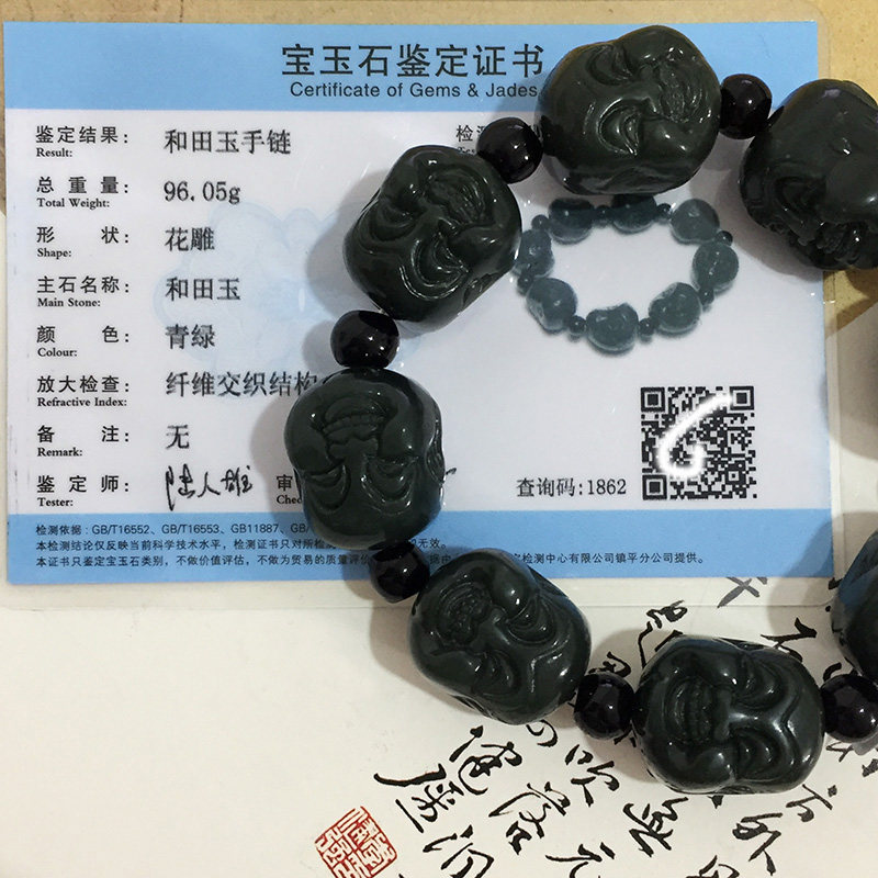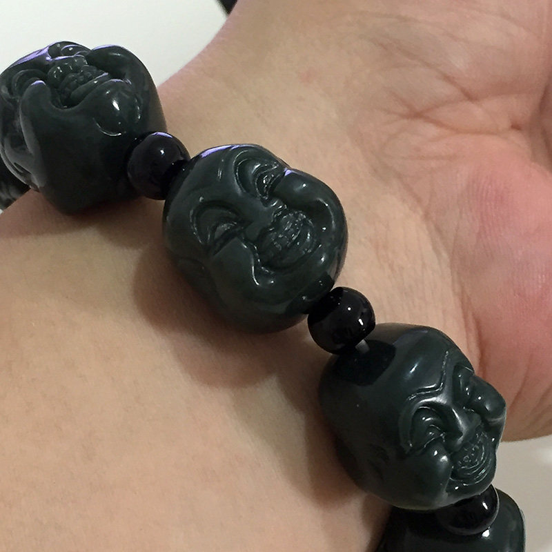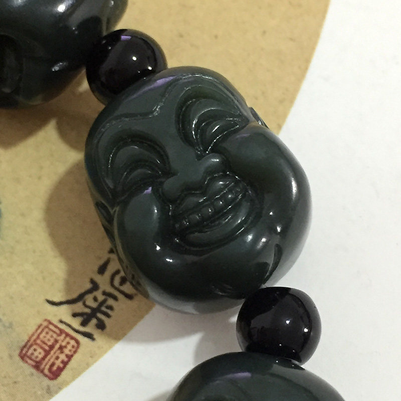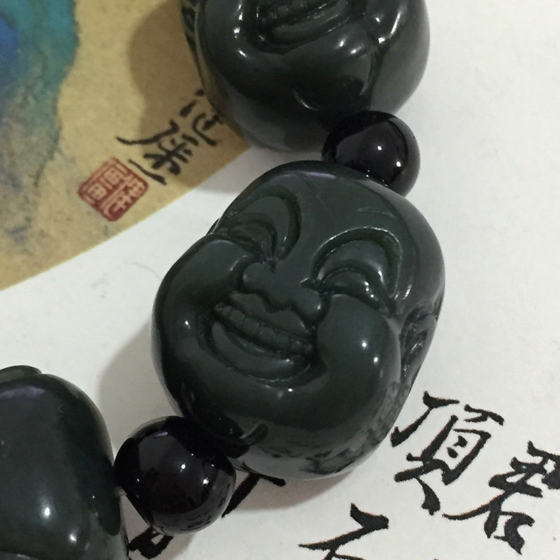 Xinjiang and Tian Yufoo head handmade Qingyuu public handstrings of natural jade double-sided Buddha head beads male and female