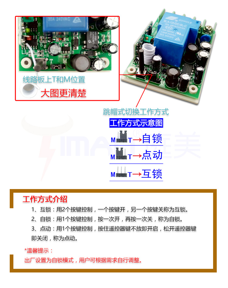 Normally open and normally closed learning type 220V high-power wireless remote control switch module single-channel passive switch output