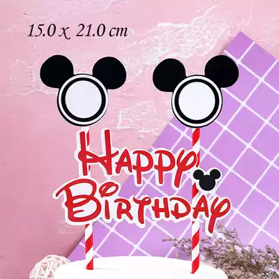 Cake decoration flag Minnie Mickey robot cat KT cat Sophia cartoon flag happy birthday card