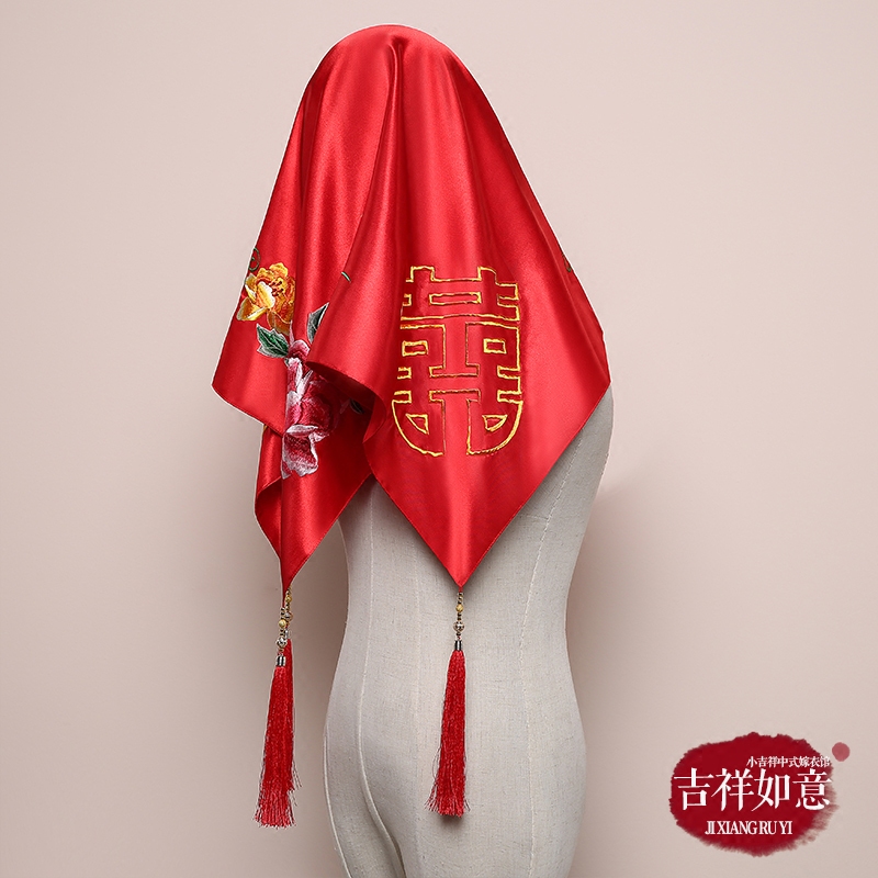 Hand embroidery Red hijab Embroidered Tassel Hijab Bride Hijab Chinese wedding Red hijab Hiker Red hijab