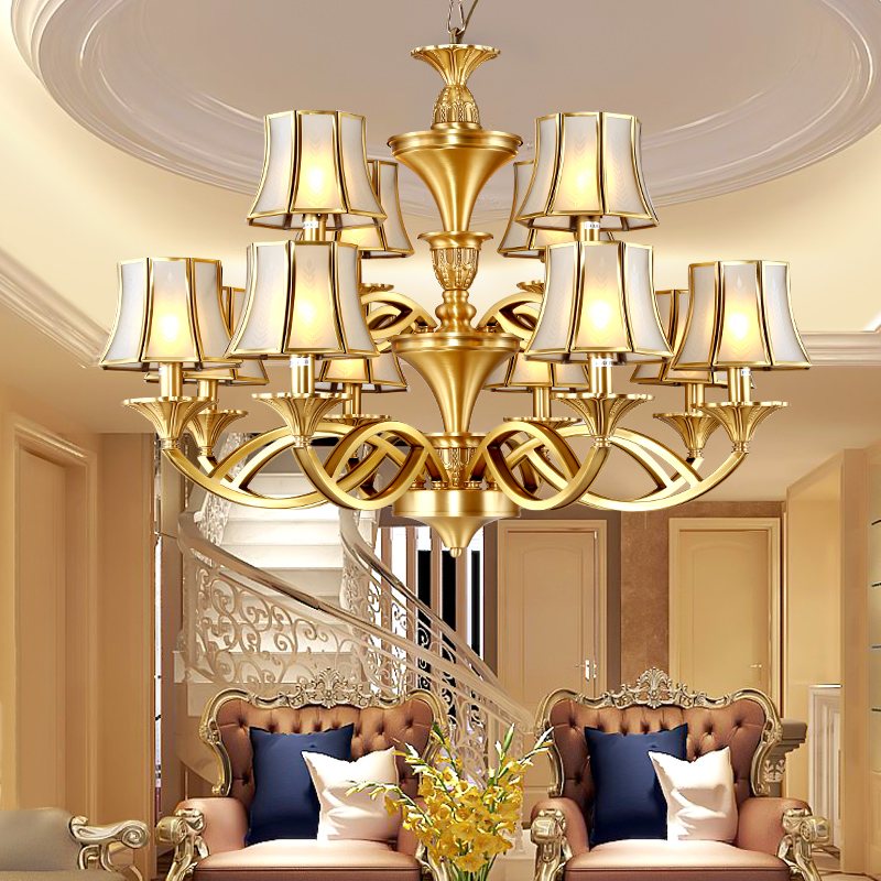 Duplex building villa living room three-story large chandelier all copper building middle floor hollow European-style chandelier