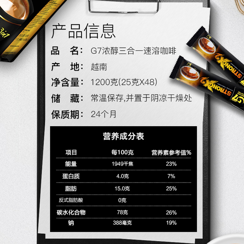 Vietnam imported Central Plains G7 concentrated alcohol 3 in 1 super concentrated instant coffee powder big package 1200g*2 bags