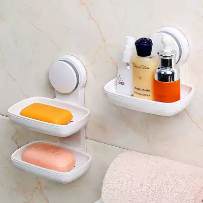 Creative bathroom suction cup fat soap box Double-layer incense box Drain rack Wall-mounted powder room tray vanity rack