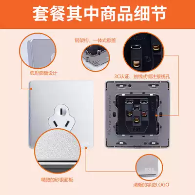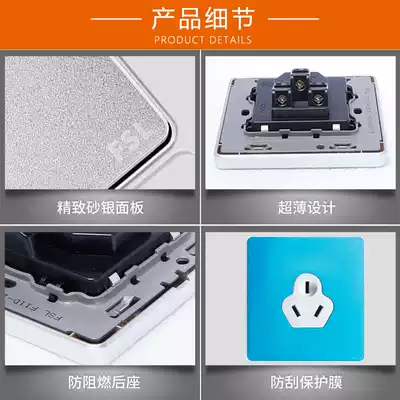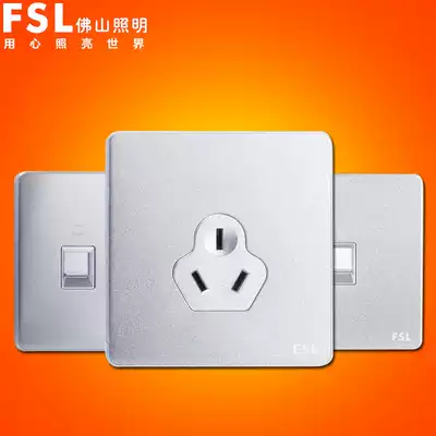 FSL Foshan lighting household sand silver single open double cut switch panel one open stainless steel sand silver 86 type home improvement