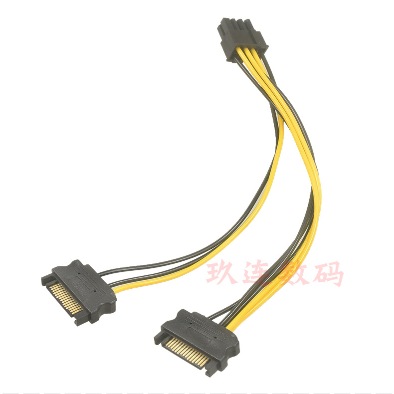 Coarse line double SATA 15p turn 8P graphics card power patch cord 6PIN 2PIN graphics card power cable double SATA turn 8Pin graphics card power cord 2 SATA