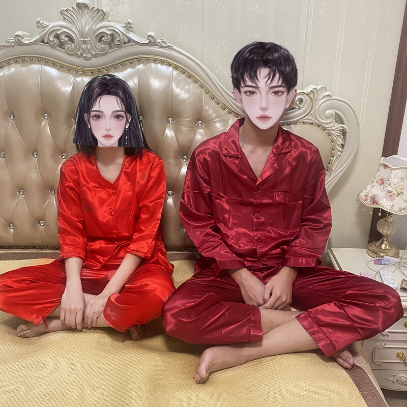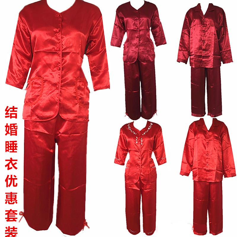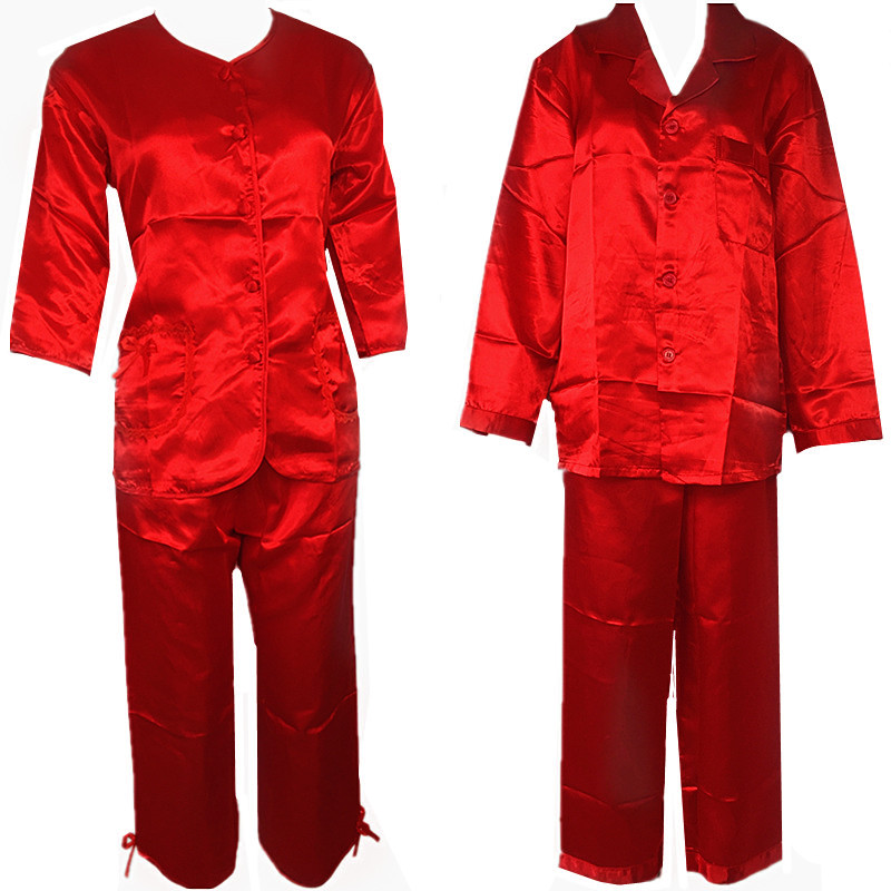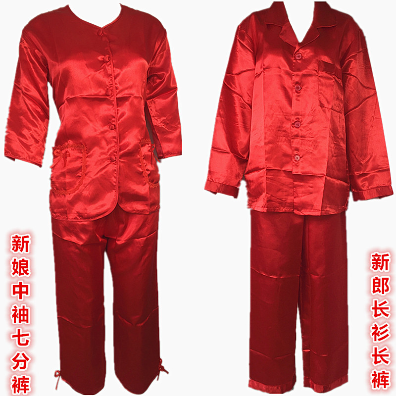Hong Kong wedding supplies bride groom marries upper head pyjamas red emulated silk traditional dress for the bottom