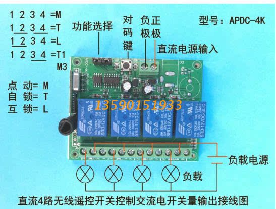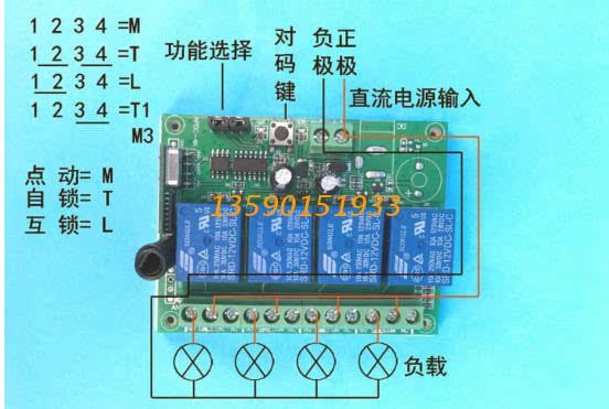 High-power water pump LED light motor long-distance 12v 24v wireless remote control switch module 4 four-way control