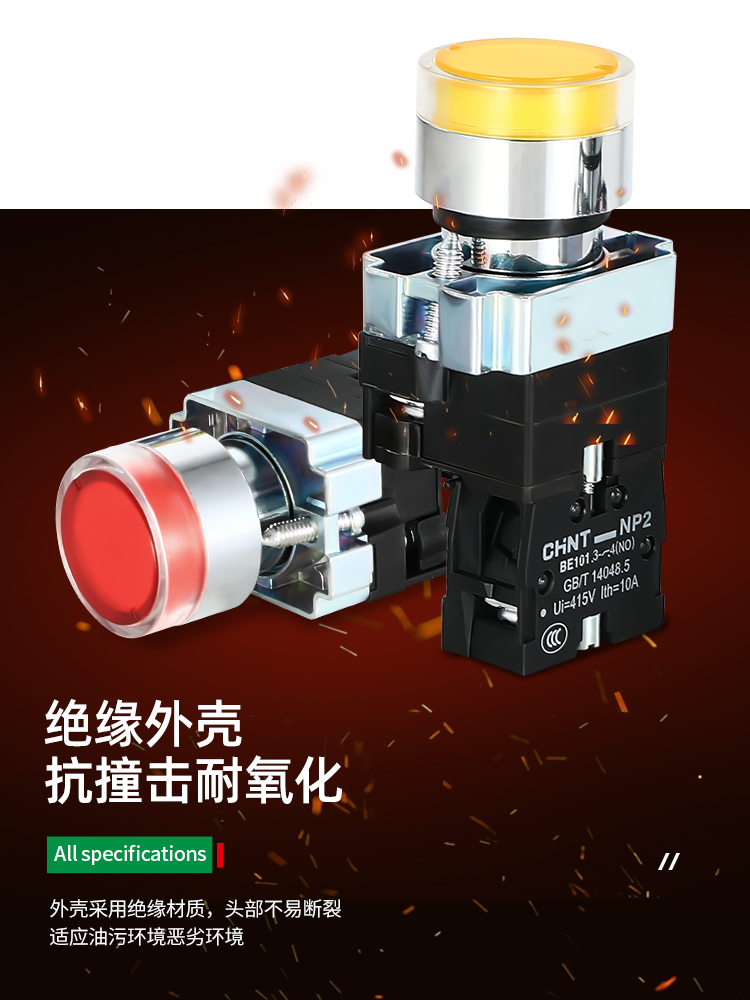 chnt Zhengtai with light button switch NP2-BW3462 AC DC24V LED button self-reset 1 often closed