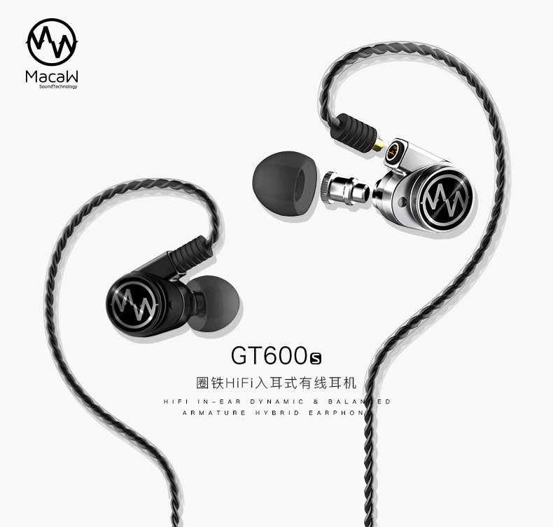 macaw GT600S dual unit dynamic coil dynamic iron HIFI fever DIY ring iron magic sound in-ear headphones
