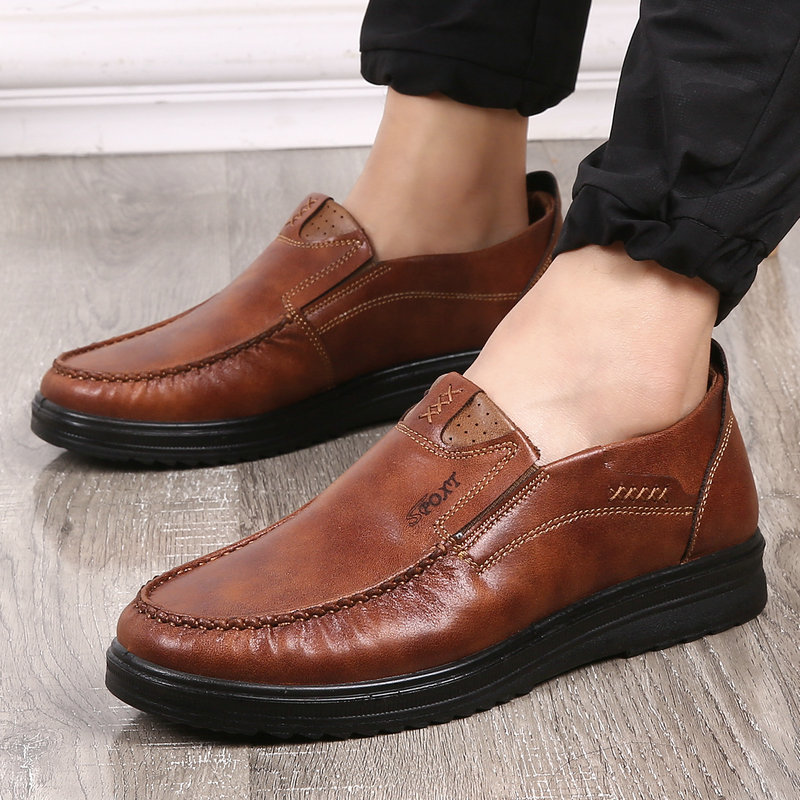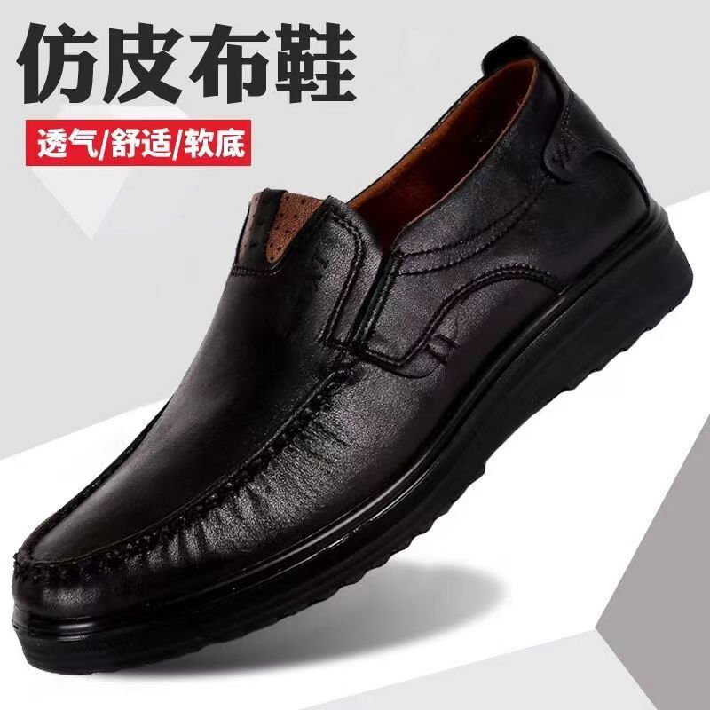 Old Beijing cloth shoes men's spring and autumn business cloth shoes black glossy imitation leather shoes soft bottom work shoes breathable men's shoes